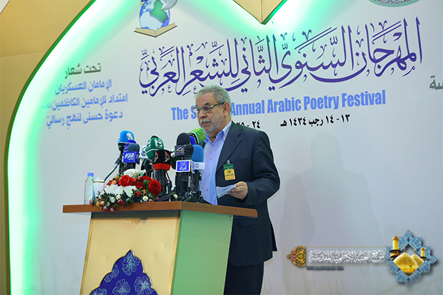 اختتمت صباح يوم السبت 14 رجب 1434هـ والموافق 25 آيار 2013م, فعاليات المهرجان السنوي الثاني للشعر العربي, الذي أقيم في العتبة الكاظمية المقدسة, حيث القيت فيه العديد من القصائد الشعرية أجادت بها قرائح الشعراء, والتي عبرت عن الأثر الوضاء والمضئ في حياة الإمامين العسكريين (ع), وأكد الشعراء المشاركون في منبر المهرجان على الدور الريادي والارث العقائدي والأدبي والثقافي, والسيرة العطرة للإمامين علي الهادي والحسن العسكري(ع).
