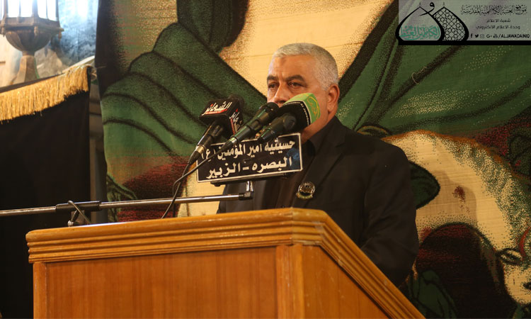 بالتزامن مع إعلان موسم الحزن والحِداد على سيد الشهداء، وانطلاق الشعائر الحسينية الخاصة بواقعة عاشوراء الإمام الحسين "عليه السلام"، أقامت الأمانة العامة للعتبة الكاظمية مراسم عزائية خاصة بهذه المناسبة في حسينية أمير المؤمنين في قضاء الزبير بمحافظة البصرة الفيحاء، بحضور ممثل المرجعية الدينية العليا فضيلة الشيخ محمد فلك والعديد من الشخصيات الاجتماعية ووجهاء وشيوخ وأعيان الزبير وشهدت تلك المراسم العزائية على تلاوة معطرة من الذكر الحكيم شنف بها أسماع الحاضرين قارئ العتبة الكاظمية المقدسة السيد عبد الكريم قاسم، بعدها القى فضيلة الشيخ عماد الكاظمي كلمة قيّمة قائلاً: (إننا عندما نرفع راية محرم المحرم إنما نرفع راية الخلود والإباء، راية الحق ضد الباطل والطغيان، وراية الإصلاح الذي دعا إليه الإمام الحسين "عليه السلام" من خلال مقولته المشهورة: إني لم أخرج أشرًأ ولا بطرًا ولا مفسدًا ولا ظالمًا، إنما خرجت لطلب الإصلاح في أمة جدي، أريد أن آمر بالمعروف وأنهَ عن المنكر .. فمن أجل هذه الغاية العظيمة قدم الحسين نفسه وأهل بيته وأصحابه "عليهم السلام" في سبيل الله، ويجب علينا أنْ نكون كذلك..) تلتها مراسم رفع راية الإمام الحسين "عليه السلام" وسط أجواء من الحزن والأسى وذرف الدموع على تلك الفاجعة الكبرى التي أصابت أهل بيت النبوة "عليهم السلام".