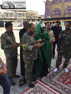 العتبة الكاظمية المقدسة تُقلّد المجاهد رحيم جاسم راية الإمامين الجوادين "عليهما السلام" تثميناً لتضحياته الجليلة