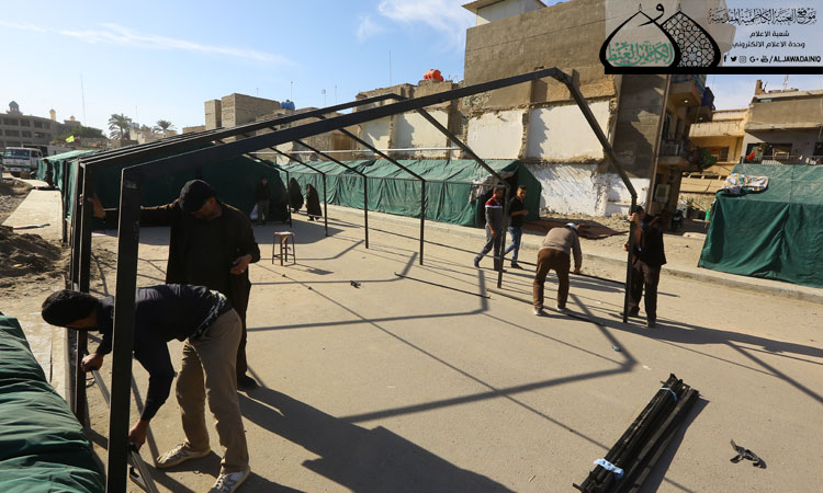 نظراً لكثرة أعداد الوافدين لموسم الأربعين هذا العام التي فاقت الأعوام السابقة، أعلنت لجنة إدارة الزيارة في العتبة الكاظمية المقدسة عن تواصلها بنصب وتهيئة الخيام في شارعي أمير المؤمنين وصاحب الزمان "عجل الله فرجه الشريف" ذات مساحة كبيرة وطاقة استيعابية عالية، والتي تم نصبها من قبل الملاكات الفنية والخدمية في العتبة المقدسة لتأمين إيواء ومبيت الزائرين الكرام الوافدين من داخل العراق وخارجه فضلاً عن فتح دور الضيافة التابعة للعتبة المقدسة والتنسيق مع حسينيات وجوامع مدينة الكاظمية المقدسة، وتوفير مختلف المستلزمات الصحية والخدمية والأمنية وتوفير وجبات الطعام . وتوكد العتبة الكاظمية المقدسة تأهّبها التام منذ أيام عدّة واستنفار جهود أقسامها لتقديم الخدمة اللازمة للحشود الزائرة وانجاح الزيارة المباركة.