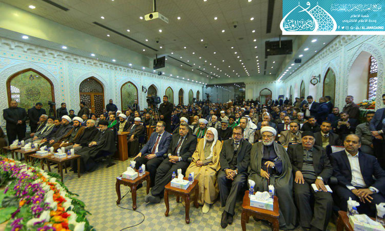 ثم ألقى الأمين العام للعتبة الكاظمية المقدسة كلمة بهذه المناسبة المباركة قائلاً: من دواعي السرور أن نلتقي في هذا المكان المبارك رحاب الإمامين الجوادين "عليهما السلام"، وأكد أن العترة هم عِدلُ القرآن، و كتاب الله هو دستور الحياة، وأضاف : (إلى جانب تعلمه فنحن بحاجة أيضاً إلى أن نجسد لغة القرآن الكريم في حياتنا، إذ إنها اليوم في خطر، ونحن مهددون بغزو ثقافي مستمر أوله هدم لغتنا، وكلنا يعلم إن المعجزة الخالدة للقرآن الكريم هي البلاغة والبيان الواردان فيه، فاللغة هي الهوية واذا كانت هذه الهوية في خطر فنحن كذلك في خطر فلا بد من الحفاظ عليها).. كما شهدت فعاليات المسابقة القرآنية مشاركة لفرقة إنشاد الجوادين، وتوزيع الدروع والهدايا على المؤسسات والجهات المنظمة لتلك المسابقة، واستُكملت فقراتها بالاستماع إلى التلاوات القرآنية المباركة من قبل المتسابقين المشاركين.