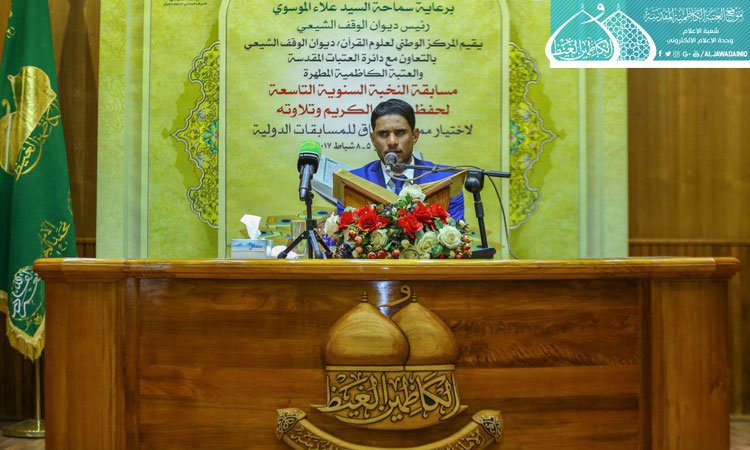 بعدها ألقى رئيس ديوان الوقف الشيعي سماحة السيد علاء الموسوي كلمة بهذه المناسبة بين فيها قائلاً: إن قاعدة التعليم في البلاد الإسلامية هو القرآن الكريم، فاليوم نجدها قد اختلفت في بلادنا وخصوصاً عند الفئات الناشئة، فكان من الضروري أن نجد برامجاً جديدة ونركز على حفظ وتلاوة القرآن الكريم وتعلم علومه من خلال إقامة الدورات المستمرة والمسابقات في المساجد والحسينيات والاهتمام بالمسابقات لسد نقص التعليم الجذري عند طلبتنا في الوقت الذي انصرفوا فيه بعيداً عن حفظ القرآن الكريم وتجويده، بل أصبح وللأسف الشديد "هواية" فلا بد من الرجوع للقرآن الكريم وبما أمرنا به رسول الله "صلى الله عليه وآله" في قوله: (إني تارك فيكم الثقلين : كتاب الله ، وعترتي أهل بيتي ، ما إن تمسكتم بهما لن تضلّوا بعدي أبدا).