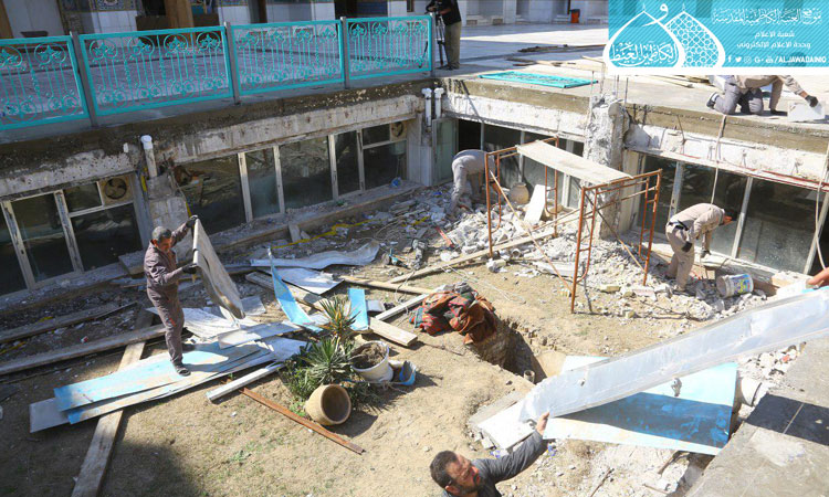 أعمال صيانة في صحن الإمام محمد الباقر "عليه السلام" استعداداً لزيارة الإمام موسى بن جعفر الكاظم "عليه السلام"