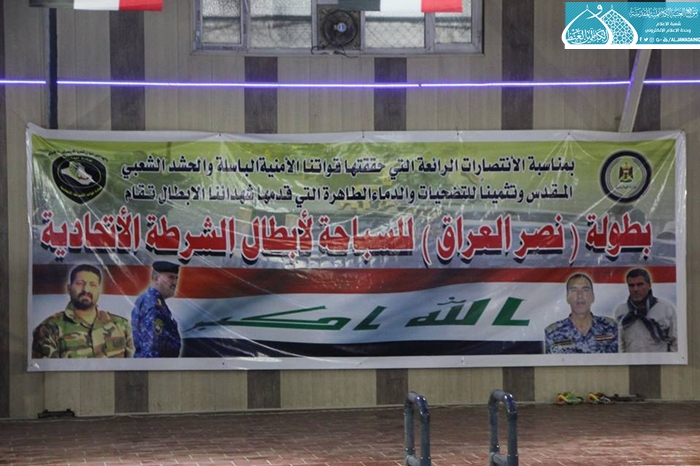 دعماً للحركة الرياضية وتشجيعاً للطاقات الشبابية بما هو مفيد لأبدانهم وعقولهم، باعتبارهم الثروة الحقيقية للوطن، حضر الأمين العام للعتبة المقدسة أ.د. جمال عبد الرسول الدباغ، بطولة "نصر العراق" للسباحة التي نظمتها قيادة الفرقة الثانية/ الشرطة الإتحادية تزامناً مع الانتصارات العظيمة والباهرة التي حققتها قواتنا الأمنية البطلة والحشد الشعبي في تحرير بلادنا وكسر شوكة الإرهاب التكفيري.