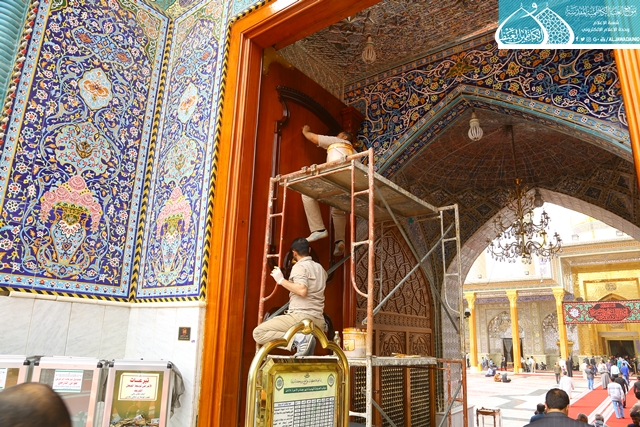 أعمال صيانة تشهدها باب المراد في العتبة الكاظمية المقدسة