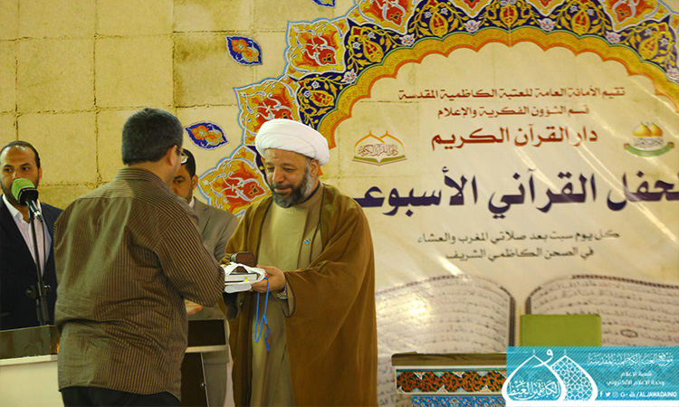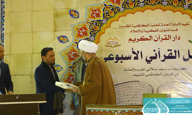 بمناسبة ذكرى ولادة الصديقة الطاهرة فاطمة الزهراء عليها السلام، وضمن مشروع العتبة الكاظمية المقدسة القرآني، الذي بات منطلقاً لترسيخ الثقافة القرآنية وتعاليمه الإيمانية بين الأوساط الاجتماعية، انطلقت فعاليات المحفل القرآني الأسبوعي الذي تقيمه الأمانة العامة للعتبة الكاظمية المقدسة/ قسم الشؤون الفكرية والإعلام ـ دار القرآن الكريم، يوم السبت 18 آذار 2017 بحضور نائب الأمين العام للعتبة الكاظمية المقدسة وعدد من أعضاء مجلس الإدارة ومجموعة من الأساتذة المتخصصين والمهتمين بالشأن القرآني. شهد المحفل في أسبوعه الأول استضافة القارئ حامد زيدان، والشيخ حسام المنشداوي وقارئ عتبة السيدة معصومة مهدي علم خا، إذ اتحفوا الحفل بتلاواتهم المباركة وأصواتهم الشجية، وتخلل المحفل مشاركة فرقة إنشاد الجوادين وتوزيع الشهادات التقديرية والهدايا على المشاركين. من الجدير بالذكر أن العتبة الكاظمية المقدسة مستمرة بإقامة محافلها القرآنية الأسبوعية كل يوم سبت بعد صلاة العشائين واستضافتها لشخصيات قرآنية بارزة.