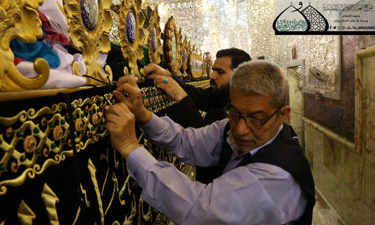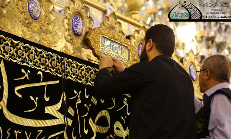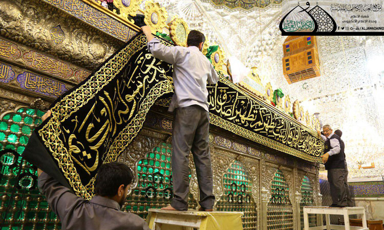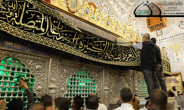 بدأت تعم أرجاء الصحن الكاظمي الشريف بأجواء الحزن والأسى مع قرب حلول ذكرى استشهاد باب الحوائج موسى بن جعفر الكاظم، حيث قام خدام العتبة الكاظمية المقدسة في وحدة الخياطة والتطريز وبالتعاون مع حدة الحرم، بإنجاز مجموعة من الأعمال منها نصب وتركيب الوشاح الأسود للضريح الشريف للإمامين الجوادين "عليهما السلام" المطرز بآية التطهير والعبارات الولائية.