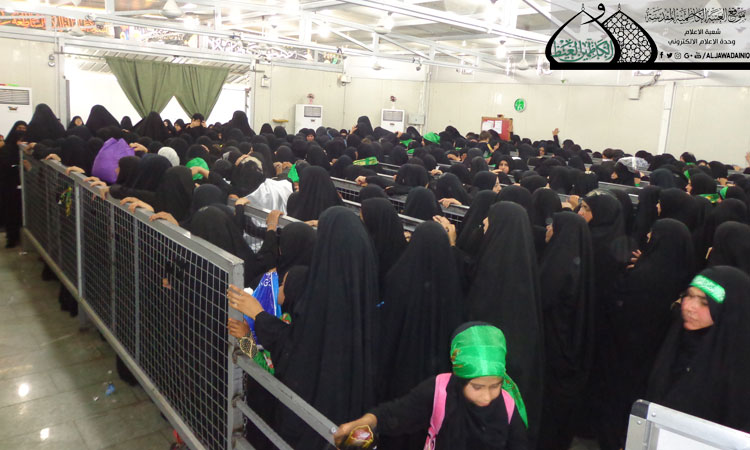 جُلجلت القيود ودوت الأصفاد لتُنذر بصداها العالم الإسلامي بقدوم ذكرى استشهاد رهين السجون والمغيّب في ظلم المطامير الإمام موسى بن جعفر الكاظم (عليه السلام), وما كان للملايين من الموالين والمحبين إلا التلبية والسعي الحثيث من كل حدب وصوب قاصدين جنته ومرقده الشريف إحياءً لذكراه الأليمة ومعزين لحفيده صاحب العصر والزمان الإمام المهدي (عجل الله فرجه الشريف). إذ شهد الصحن الكاظمي المطهر توافد أعداد هائلة من الزائرين وكان للنساء الزائرات المعزيات وجود مميز في هذه الزيارة المليونية, وقد حدثتنا مسؤولة شعبة الشؤون النسوية السيدة (هناء الموسوي) عن الخدمات الاستثنائية التي قدمتها الشعبة لاستقبال الزائرات قائلة: بحمد الله ومنّه وبتوجيه من الأمانة العامة للعتبة الكاظمية المقدسة عملنا على استنفار كل الجهود والطاقات ومضاعفتها في هذه الزيارة المليونية من أجل تقديم أفضل الخدمات وأحسنها للزائرات الكريمات وتسهيل زيارتهن وحركتهن داخل العتبة المطهرة, وذلك من خلال زيادة ساعات عمل الخادمات وتقسيم الكوادر على شكل وجبات منتظمة ونظراً للأعداد الكبيرة للزائرات فقد استعنا بالمتطوعات من بغداد وباقي المحافظات واللواتي كان لهن دور في دعم هذه الزيارة وبلغ عددهن (200) متطوعة تقريباً ليشاركن أخواتهن الخادمات في مختلف الأماكن الخاصة بالنساء من أجل خدمة الزائرات الكريمات من بداية دخولهن إلى الصحن الشريف حيث مراكز تسلم الهواتف النقالة, ودخولهن من أبواب التفتيش الأربعة وهي: (باب المراد, وباب القبلة, وباب الإمام الحسين (عليه السلام), وباب صاحب الزمان) حيث تمت تهيئتها من أجل تفتيش الزائرات بدقة لضمان سلامتهن, وكان للخادمات والمتطوعات المتواجدات في ساحات الصحن المبارك وجامع الجوادين والحرم الشريف دور كبير في تنظيم سير الزائرات وتوجيههن من بداية دخولهن وأدائهن للزيارة والمراسيم العبادية لحين خروجهن, إضافة إلى توفير الخدمات الأخرى مثل زيادة أعداد الكشوانيات إذ فتحت (15) كشوانية إضافية جديدة, وتهيئة الحمامات الخاصة بالنساء وزيادة أعدادها لتوفير أفضل الخدمات لهن.