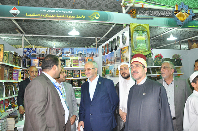 بعدها زار الدكتور الدباغ معرض الكتاب الذي شهدته أروقة مسجد الكوفة المعظم ضمن فعاليات المهرجان من بينها جناح العتبة الكاظمية المقدسة المشارك فيه وأبدى استحسانه بالنتاجات الثقافية والفكرية المعروضة. وكان لابد لوفد العتبة الكاظمية المقدسة من التشرف بزيارة أمير المؤمنين الإمام علي بن ابي طالب(ع), وبعد أداء مراسم الزيارة والدعاء عند الضريح الطاهر, توجه الوفد الى ادارة العتبة العلوية حيث استقبلوا من قبل سماحة الشيخ (ضياء الدين زين الدين) الأمين العام للعتبة العلوية المقدسة, وجرى خلال اللقاء تبادل عبارات الود والترحيب والتوكيد على تبادل الخبرات والتنسيق المشترك بين العتبتين, وعبر الدكتور الدباغ عن بالغ سروره بهذا اللقاء, وأشاد بالمشاريع المباركة التي تقوم بها العتبة العلوية المقدسة متمنياً لجميع خدمتها التوفيق والسداد وقبول الأعمال. وخلال هذه الجولة قام وفد العتبة الكاظمية المقدسة بزيارة بعض مكاتب المرجعيات الدينية الشريفة في النجف الأشرف, وأطلعَ الدكتور الدباغ الأمين العام للعتبة الكاظمية المقدسة المراجع العظام خلال هذه اللقاءات المباركة عن المهام الادارية والمسؤوليات التي تسلمتها الهيئة الادارية الجديدة, وعن أهم المشاريع التي تقوم بها العتبة المقدسة, كما استمع الوفد الى اهم التوجيهات القيمة من قبل المرجعيات الرشيدة التي تصب في خدمة العتبات المقدسة وزائريها الكرام . ثم توجه وفد العتبة المقدسة الى كربلاء المقدسة لزيارة الإمام الحسين وأخيه ابي الفضل العباس(ع), وعلى هامش الزيارة التقى الوفد بالأمين العام للعتبة الحسينية المقدسة سماحة الشيخ (عبد المهدي الكربلائي), والمسؤولين في العتبة العباسية المقدسة, وتم التداول بشؤون العمل المختلفة وآفاقه .