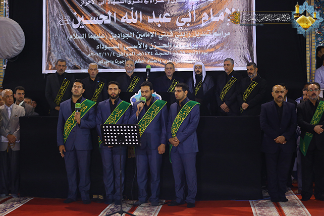 وتخللت هذه المراسم قصيدة رثائية لشاعر أهل البيت الأستاذ(مهدي جناح الكاظمي), بعدها استمع الحاضرون لتسجيل صوتي لخادم المنبر الحسيني الرادود المرحوم (حمزة الصغير)طاب ثراه. ثم ألقى الرادود (كرار الكاظمي) مجموعة من المراثي والقصائد العزائية واسى بها النبي الأكرم (صلى الله عليه وآله)وأهل بيته الأطهار (عليهم السلام) بهذه المصيبة الراتبة.