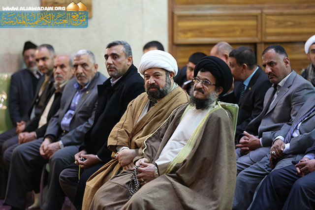 العتبة الكاظمية السيد(عبد الكريم قاسم), ثم ألقى سماحة الشيخ(مكي شطيط الطائي) كلمة بهذه المناسبة تحدث فيها قائلاً: (اسعد الله أيامنا وأيامكم بولادة الرسول الرحمة والإنسانية محمد(ص) وحفيده الامام الصادق(ع), وباسم الأمانة العامة للعتبة الكاظمية المقدسة وأمينها وأعضاء مجلس إدارتها نهنئ ونبارك لكم هذا الزواج المبارك, ونسأل الله العلي القدير وبحق الإمامين الجوادين أن يمن عليكم بالراحة والسعادة والود والوئام وأن يرزقكم الذرية الصالحة)