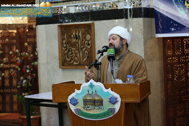 وعن الجوانب الإنسانية التي جاء بها رسول الله(ص) استطرد قائلاً, (إن النبي(ص) الذي بعثه وأرسله رحمة للعالمين, والنبي (ص) يمثل الأنموذج الإنساني بكل صفاته فكان مثالاً للإنسانية اجمعها عندما انتجبه واصطفاه ان يكون خاتماً للأنبياء, فبُعث النبي(ص) ليوحدنا ويجعلنا صفاً, فجعل المسلم مع أخيه المسلم كالبنيان المرصوص, فجاء لهذا العالم الذي كان يأكل فيه القوي الضعيف, وكذلك وصف ولادته بالنور مستشهداً ببيت شعري