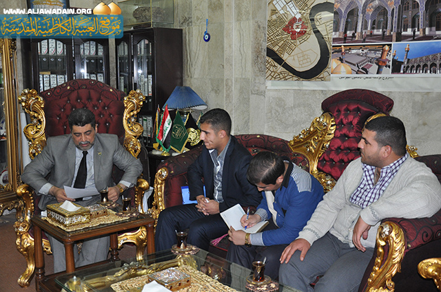 تشرف وفد من منظمة شباب لأجل السلام احدى مؤسسات المجتمع المدني, بزيارة الامامين الجوادين(ع) وبعد ادائهم مراسم الزيارة, توجه الوفد الى مقر إدارة العتبة حيث التقوا بالأمين العام للعتبة الكاظمية المقدسة الحاج فاضل الانباري, وجرى خلال اللقاء تبادل عبارات الود والترحيب وتحدث معهم مشيداً بدور هذه الثلة الطيبة من الشباب الرسالي المؤمن ودورهم الكبير التوجيهي والإرشادي في توعية هذه الشريحة الاجتماعية نحو اهداف وطنية تحمل في طياتها المعاني السامية لبناء عراق موحد وأكد قائلاً : (على الشباب ان يأخذوا دورهم الفاعل في بناء مستقبلهم المشرق وعدم التأثر والانجراف نحو الافكار والتيارات المنحرفة وأن يسعوا ويجدوا ويجتهدوا لنيل العلم و المعرفة بكل أبعادها، وإصلاح الذات، وتمييز الحق والباطل، ولتحقيق تطلعاتهم يجب الاقتداء بالأئمة المعصومين(ع) والسير على منهجهم القويم) .