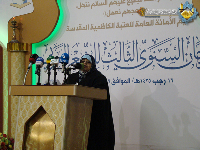 وكان للجنة المنظمة للمهرجان كلمة بهذه المناسبة ألقاها الشاعر"عامر عزيز الانباري" مخاطباً فيها الحضور قائلاً: " لم يكن اللقاء عابراً ولا عفوياً بل هو لقاء المحبين والذين تترقب قلوبهم إطلالة شهر رجب الأصب فيتحقق ميعادهم ليعيشوا سعادة اللقيا عند رياض القداسة يترنمون بأحرفهم المموسقة على غدران الولاية والعقيدة بين زقزقة العصافير وتغريدة البلابل وخرير الغدران والجداول على تراب الإيمان ونفحات الرحمن في روضات الجنات في بيوت أذن الله ان ترفع ويذكر فيها اسمه..