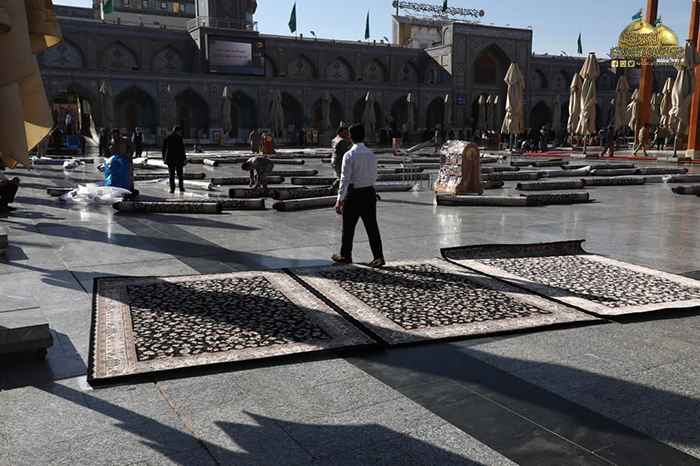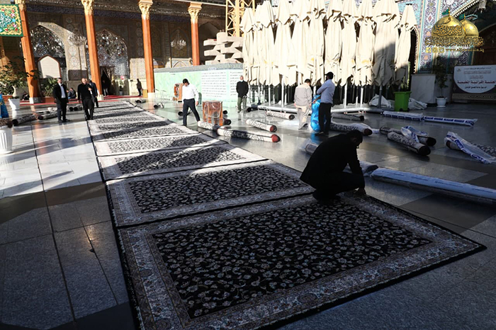 تجديد أطقم السجاد والفرش في أرجاء الصحن الكاظمي الشريف