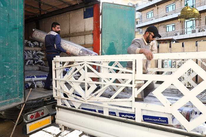 تيمناً بذكرى الولادة المباركة لعقيلة الطالبيين السيدة زينب الكبرى بنت أمير المؤمنين علي بن أبي طالب "عليهما السلام"، وجّه خادم الإمامين الكاظمين الجوادين الأمين العام للعتبة الكاظمية المقدسة الأستاذ الدكتور حيدر حسن الشمّري، ملاكات شعبة النظافة في العتبة المقدسة بفرش أطقم السجاد الجديد في أرجاء الصحن الكاظمي الشريف، حيث تم تغيير فرش السجاد القديم، وبواقع (600) سجادة كوجبة أولى قياس (2x3) والتي تتميز بمواصفات وجودة عالية وفاخرة بدءاً من دقة العمل الفني والحرفي ونقوشها النباتية وألوانها الزاهية حيث أن المنسوج مصنّع خصيصاً إلى العتبة الكاظمية المقدسة.