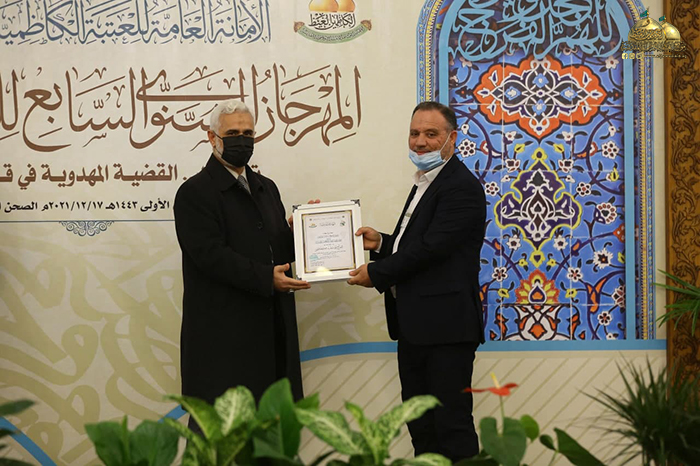 وكان مسك ختام فعاليات هذا المهرجان توزيع الدروع والشهادات التقديرية على الشعراء المشاركين، والجنة المنظمة للمهرجان والشعراء والرواد الذين خدموا في العتبة المقدسة فضلاً عن ضيف المهرجان الدكتور محمد حسين آل ياسين رئيس المجمع العلمي العراقي، وسط تطلعات الأمانة العامة للعتبة الكاظمية المقدسة بأن يكون هذا المهرجان والمهرجانات القادمة بإذنه تعالى مناسبةً لتكريس وتجذير المبادئ السامية التي دعا إليها أهل البيت "عليهم السلام" فضلاً عن توظيف الشعر العربي لنشر الأخلاق والعقائد وترسيخ الثقافة المستندة إلى لغة القرآن الكريم، وتعزيز لغة الضاد بالنتاجات الأدبية.