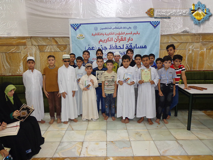 بدعم من الأمانة العامة للعتبة الكاظمية المقدسة ومتابعة مستمرة على تيسير العمل القرآني للشباب والصغار وخصوصا طلبة المرحلة الابتدائية, حيث تتوالى الجهود الحثيثة من اجل إنجاح الإعمال والنشاطات القرآنية سيما في شهر ربيع القرآن شهر رمضان الكريم حيث أقيمت مسابقة لحفظ جزء عمّ والخاصة بدورة الجوادين القرآنية والتي يرتادها طلبتنا الأعزاء من البنين والبنات للأعمار من (8- 15 ) لترسيخ الثقافة القرآنية ليتنافسوا على حفظ آيات الله البينات وكان حكما على جودة الحفظ الحافظ لكل القرآن الحاج مكي السعدي وعلى التفسير والمعاني الشيخ عماد الكاظمي والشيخ نجم الدراجي والشيخ قاسم الخفاجي وعلى الإتقان السيد عبد الكريم قاسم والأستاذ حيدر سعد الكاظمي والحاج محمد حسين الشامي حيث كانت الأجواء التنافسية مليئة بالتفاعل مما يعطي الأمل بنشوء جيل واع ٍ يعمل مع القرآن حفظا وقراءة وتطبيقا .
