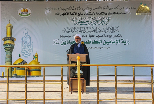 كما أشار فضيلته أبرز صفات إمامنا الكاظم "عليه السلام" التي يتوجب الاقتداء بها، والحث على تطبيق مبادئه العظيمة التي أراد غرسها " عليه السلام" عند محبيه ومواليه، والتأكيد على الاستلهام من ثقافته الرسالية وضياء سيرته الوضاءة، وهدى أقواله وأفعاله وأحاديثه في الصبر وكظم الغيظ وكلّ المعاني السامية.