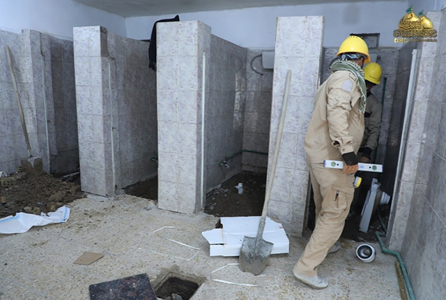 إعادة تأهيل مناهل مياه الشرب والمغاسل وإكساء جدرانها بمادة السيراميك، وتأسيس منظومة مياه الإسالة وتجهيزها بالحنفيات وغيرها من المواد الصحية.