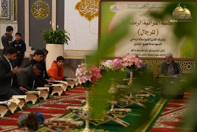 منذ حلول شهر الخير علينا حتى امتلأت أيامه المباركة بالأجواء الإيمانية والروحانية تتوجها تلاوة آيات الذكر البيّنات لتعيد الربيع لحياتنا وتجلي صدأ قلوبنا التي أظلمتها الذنوب وأثقلتها الهموم، لذا أقامت الأمانة العامة للعتبة الكاظمية المقدسة/ مركز القرآن الكريم الجلسات القرآنية التعليمية للرجال واليافعين، وتشهد تلك الجلسات القرآنية التي تُقام يومياً بعد صلاتي العشاءين بإشراف القارئ الشيخ سلام الرماحي، قراءة جزء كامل من المُصحف الشريف في كلّ ليلةٍ من ليالي الشهر الكريم، والاستماع للقرّاء المشاركين وتقديم كلّ ما يهمّهم من ملاحظات تخصّصية قيّمة تساعدهم في تطوير أدائهم الإقرائي وصولاً إلى التلاوة المُتقنة.