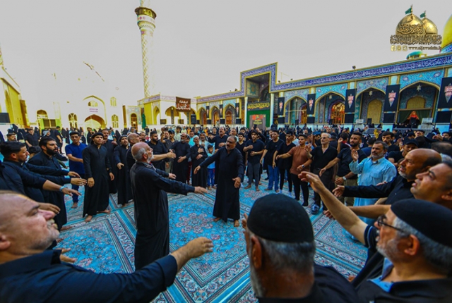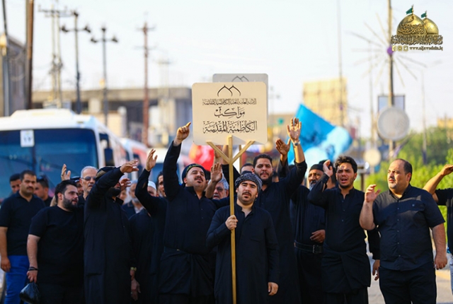خدام العتبة الكاظمية المقدسة يشاركون في تنظيم مسيرة عزائية بمدينة الكوفة العلوية