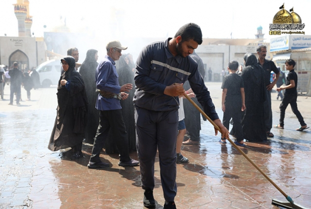 تعددت الطرق والوسائل التي يمكن من خلالها تقديم أفضل الخدمات للضيوف والزائرين القادمين لأداء زيارة الإمامين الكاظمين الجوادين "عليهما السلام"، وإحياء موسم زيارة أربعينية الإمام الحسين "عليه السلام"، إذ حرصت شعبة النظافة التابعة لقسم خدمة الزائرين دون كَلَلٍ أو مللٍ في استنفار جهودها وإنجاز أعمالها لأجل تقديم الخدمة اللازمة وإدامة المكان الطاهر والحفاظ على نظافته وتوفير سبل الراحة للزائرين الكرام.
