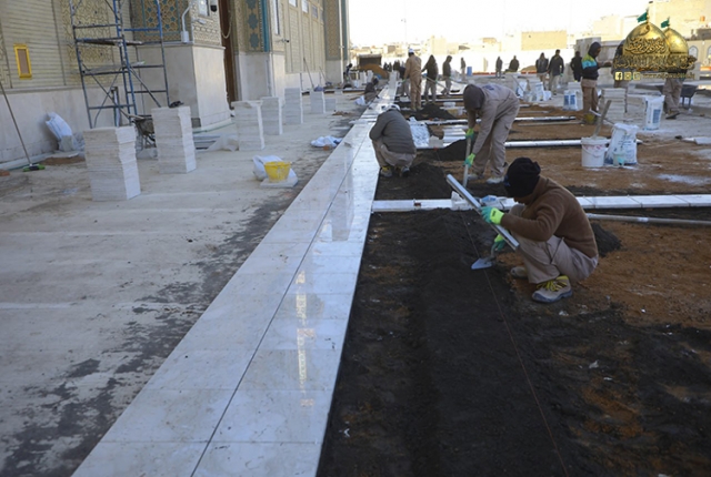 في إطار الجهود والمساعي المباركة لتطوير العتبة الكاظمية المقدسة، شرعت الملاكات الهندسية والفنية في العتبة المقدسة وبإشراف ومتابعة حثيثة من قبل الأمين العام للعتبة الكاظمية المقدسة، خادم الإمامين الكاظمين الجوادين الدكتور حيدر حسن الشمّري، بمرحلة تطوير وإكساء أرضية صحن الإمامين الحسنين "عليهما السلام" بالمرمر وبمساحة تقدر (9830م2) وفق التصاميم المعمارية المُعدّة للمشروع، في الوقت الذي يبذل فيه العاملون المزيد من الجهود لإنجاز تلك الأعمال وفق الجداول الزمنية والمواصفات التنفيذية.