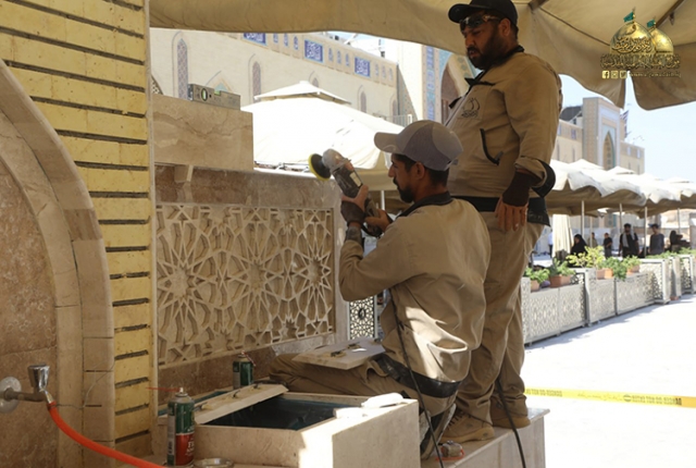 صحن الإمامين الحسنين "عليهما السلام" يرتدي حلته المرمرية
