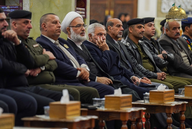 واستهل الحفل بتلاوة آي من الذكر الحكيم شنف بها أسماع الحاضرين القارئ الخادم باقر أحمد سهر، بعدها قراءة سورة الفاتحة المباركة أهدي ثوابها إلى الشهداء الأبرار، تلتها كلمة الأمانة العامة للعتبة الكاظمية المقدسة وألقاها أمينها العام جاء فيها قائلاً: (الشهداء هم منارات الأمة، ورموز التضحية والفداء الذين رسموا بدمائهم الطاهرة طريق الحرية والعزة.. وها نحن اليوم نجتمع في هذه الرحاب القدسية في جنة موسى والجواد لنستذكر شهداء معارك النصر والتحرير، وهي مناسبة تذكرنا بواجبنا في حمل رسالة النبي الخاتم وآله الشهداء الطيبين الطاهرين، والسير على نهجهم لتحقيق الأهداف التي جاءوا بها واستشهدوا من أجلها.. فهم لم يكونوا مجرد أفراد، بل كانوا روح الإنسانية التي تسعى للدفاع عن كل فضيلة ونبذ كل رذيلة فجسدوا اسمى معاني البذل والعطاء.. فلنخلد ذكراهم بالمحافظة على الوحدة والعمل المشترك لتحقيق هدفهم بمجتمع مؤمن بالله تعالى وبدينه الحق الإسلام العظيم، لا تزحزحه رياح الشر والرذيلة مجتمع متسلح بالعقيدة والإيمان والإباء، والعدل والبناء، وجبهة صدٍّ لمواجهة أعداء الإنسانية، ولنكن أوفياء لدمائهم ولدماء من استشهد على نهجهم بأن نبقى على دربهم ثابتين، لا نحيد عن الحق ولا نخشى التضحيات.