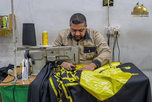 حين تصافح الإبرة خيوط الولاء، وتنسج أنامل الإخلاص رايات العزاء، في أبهى صور الوفاء، تتجلى روح الخدمة المخلصة في الاستعداد لإحياء الذكرى الأليمة لاستشهاد إمام الصبر موسى بن جعفر الكاظم "عليه السلام"، لذا انجزت وحدة الخياطة والتطريز التابعة لقسم الشؤون الهندسية في العتبة الكاظمية المقدسة أعمال صناعة اللافتات الكبيرة والكلمات النورانية التي ستوضع على أعمدة الطارمات وأسوار الصحن الكاظمي الشريف في صورة تعكس الهيبة والقدسية لهذا المقام الطاهر في أيام العزاء والحِداد.