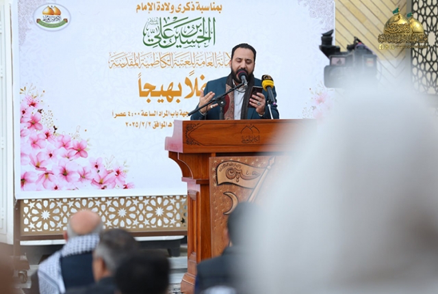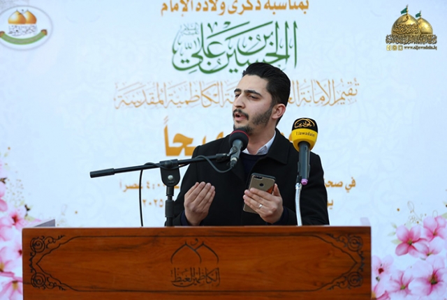 وسط غمرة الأفراح التي تعيشها أمتنا الإسلامية بحلول شهر شعبان المعظّم، وذكرى ولادة ابن بنت الرسول وسيد شباب أهل الجنة الإمام أبي عبد الله الحسين "عليه السلام"، وبرعاية مباركة من الأمين العام للعتبة الكاظمية المقدسة، خادم الإمامين الكاظمين الجوادين الدكتور حيدر حسن الشمّري، شهدت رحاب صحن الإمام الرضا في العتبة الكاظمية المقدسة حفلاً جماهيرياً بهيجاً، بعرافة الخادم الشاعر هادي هلال السلامي، استهل بتلاوة من الذكر الحكيم عطر بها أسماع الحاضرين القارئ الخادم باقر أحمد سهر، بعدها مشاركة إنشادية للخادم علي نجم الكناني، والمنشد حسن رشل الخفاجي، ترنمت بالحب والولاء والوفاء لصاحب الذكرى سيد الشهداء الإمام الحسين "عليه السلام"، لإضفاء الفرح والبهجة في نفوس الحاضرين الموالين من زائري الإمامين الكاظمين الجوادين "عليهما السلام".