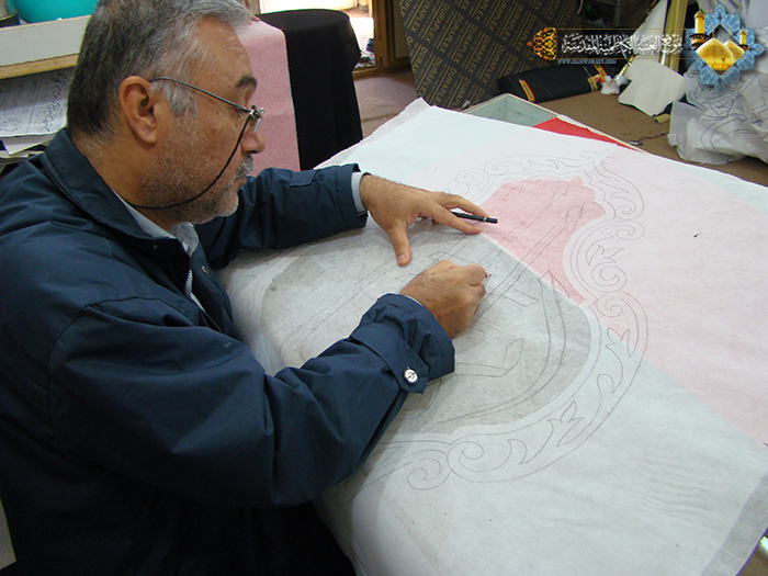 فن التطريز .. من الفنون التي امتازت بالعراقة والإبداع، بالرغم من التطورات والابتكارات التي رافقت ذلك الفن إلا إنه استطاع أن يحافظ على الكثير من خصائصه وسماته البشرية، وقد حرصت العتبة الكاظمية المقدسة أن تحتضن بعض هذه الأنامل المبدعة التي أجادت هذه الحرفة، لكي تنتج لنا اليوم باقة متنوعة من الأوشحة المطرزة بكلمات نورانية وأقوال أئمة أهل البيت "عليهم السلام" لكي تعلق وتُوضع في الحرم الكاظمي المقدس وأعمدة المشهد الشريف في المناسبات الدينية فضلاً عن تصنيعها لرايات الإمامين الجوادين "عليهما السلام" ولأجل معرفة المزيد عن دور وحدة التطريز التابعة لقسم الشؤون الخدمية في العتبة الكاظمية المقدسة وأهم الأعمال والنتاجات كان لنا لقاء مع مسؤولها السيد "سلام كريم عبود" وتحدث لنا قائلاً: إن عملية التطريز تمر بمراحل عدّة ابتداءً من اختيار قطعة القماش حسب القياس المطلوب ليتم وضع مادة اللاصق عليها، أما الأنواع المستخدمة من القماش هي "القديفة، والستن، الكتان" المتوافرة في الأسواق المحلية، بعدها يأتي اختيار العبارات حسب المناسبة الدينية ونوعية الخط والزخرفة المستخدمة فيها، هنا تعتمد على ذوق الخطاط فإن جميع أنواع الخط مناسبة ولكن، الأغلب الأعم يستخدم خط الثلث لجماليته وتناسق حروفه مصحوباً بالزخارف النباتية والإسلامية، بعد ذلك يتم تنسيق الخيوط وألوانها وأنواعها وبعض المكملات لعملية التطريز.