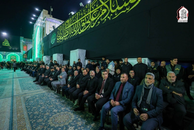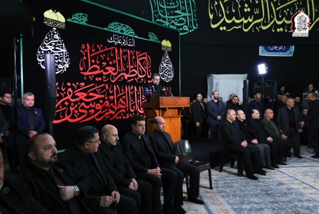 يرفعون رايات الحزن والأسى، وفي مشهدٍ إيماني مهيب شهدت رحاب الصحن الكاظمي الشريف مساء السبت 20 رجب الأصب 1447هـ، مراسم استبدال رايتي قبتي الإمامين الكاظمين الجوادين "عليهما السلام" برايتي الحزن السوداوتين إيذاناً ببدء أيام العزاء، وسط مراسم جرت بحضور الأمين العام للعتبة الكاظمية المقدسة خادم الإمامين الكاظمين الجوادين الدكتور حيدر عبد الأمير مهدي، وأعضاء مجلس الإدارة، وممثل المرجعية الدينية العُليا سماحة الشيخ حُسين آل ياسين، ووفود العتبات المقدسة العلوية والحسينية والعسكرية والعباسية والمزارات الشريفة، وبحضور نخبة من السادة الأجلاء والمشايخ الفضلاء أصحاب المشروع التبليغي الحوزوي، وعدد من الشخصيات الرسمية والاجتماعية وجمع غفير من وجهاء وشيوخ مدينة الكاظمية المقدسة ومسؤولي دوائرها الأمنية والخدمية وحشود الزائرين المعزين.