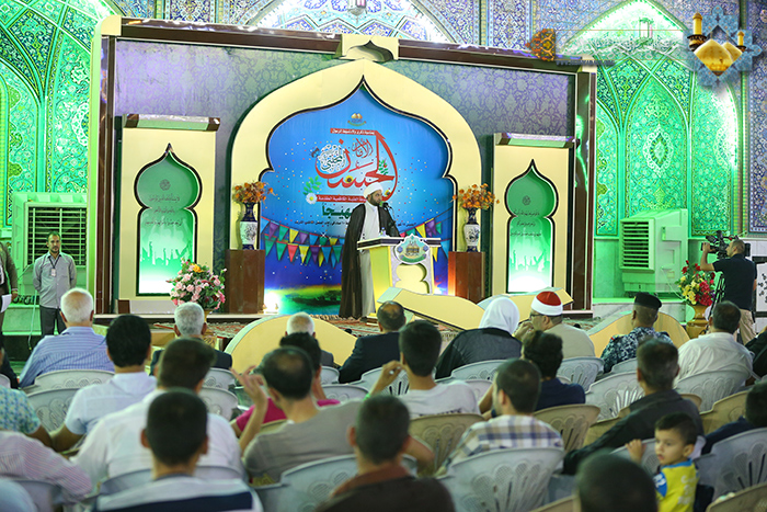 بعدها ارتقى المنصة سماحة الشيخ عبد الله الكعبي ليلقي محاضرة قيّمة بهذه المناسبة أوضح من خلالها السمات المجيدة والصفات الحميدة ومناقبه وفضائله وسجاياه التي خصها الله عز وجل للإمام الحسن "عليه السلام" واقترنها به، وهي الكرم وحلم والهيبة مستشهداً عن ذلك بالأحاديث النبوية الشريفة وبعض الروايات، كما بيّن الشيخ الكعبي ضرورة أن يستمد المرء الدروس والعبر من هذه السيرة العطرة ونهجها القويم لأنها منار للسمو والكرامة والعُلى وبلوغ ذرى المجد.