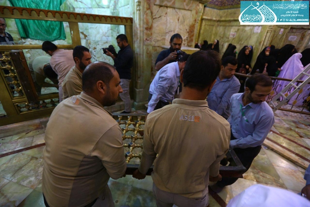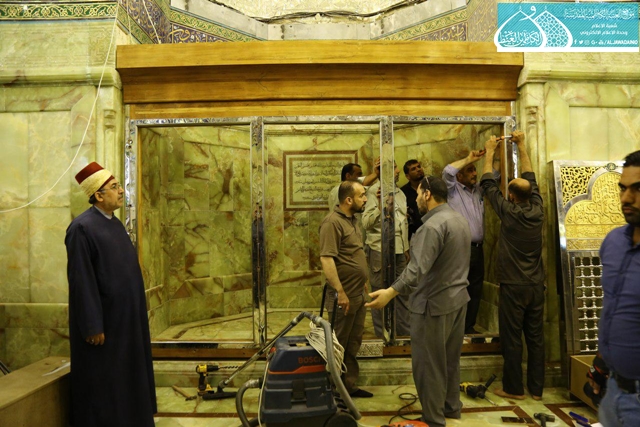 الصحن الكاظمي الشريف يشهد أعمال نصب وتركيب شبّاكي مرقدي الشيخ المفيد والخواجة الطوسي "أعلى الله مقامهما الشريف"
