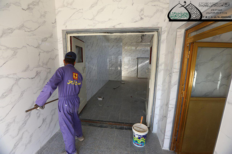وأضاف: تم الإنتهاء من المرحلة الأولى لمشروع المخازن بنسبة (100%) بمساحة تقدّر (900م2)، بطابقين، يشتمل على قاعة كبيرة تستوعب أنواع متعددة من المخزونات، أما الطابق الثاني وهو ما تشهده المرحلة الثانية للمشروع من تقطيع للفضاءات بأعمدة ومجسرات وسقوف حديدية مخصص لتخزين الفرش والسجاد بأنواعه، وفق أحدث وسائل الخزن الحديثة، حيث سيجهز بمنظومة إنارة متكاملة، ومنظومة للإنذار والحماية من الحريق، فضلاً عن نظام التأريض والتهوية.