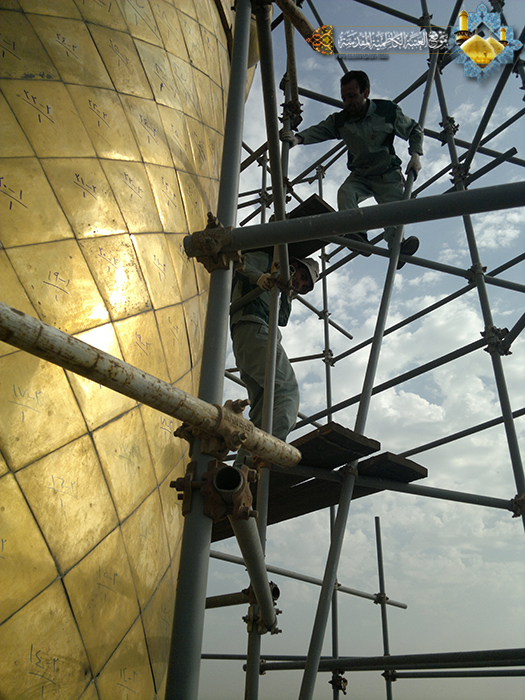 المباشرة بمشروع تذهيب المنارة الشمالية الغربية للمشهد الكاظمي المطهر