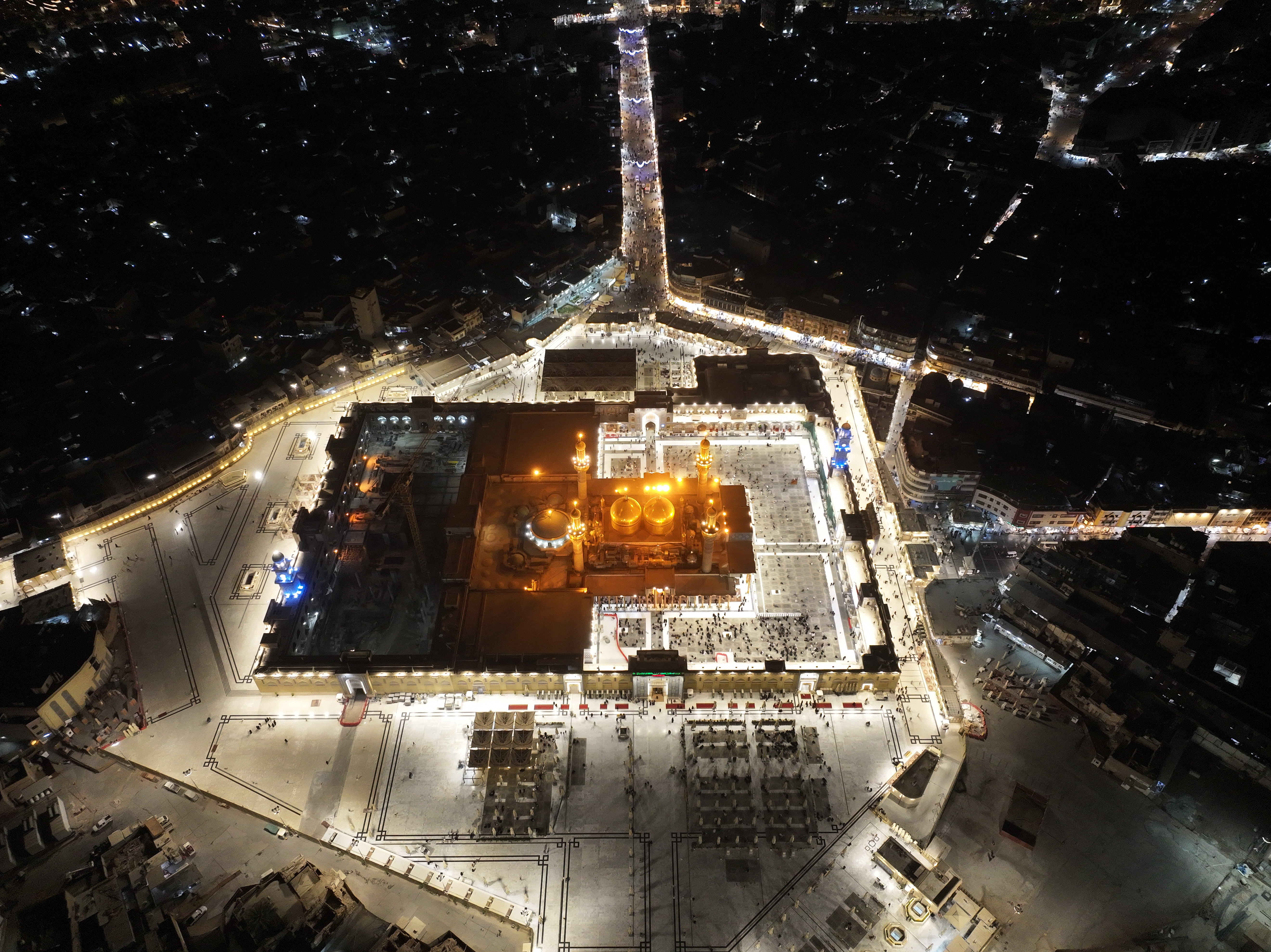 صورة جوية ليلية للعتبة الكاظمية المقدسة