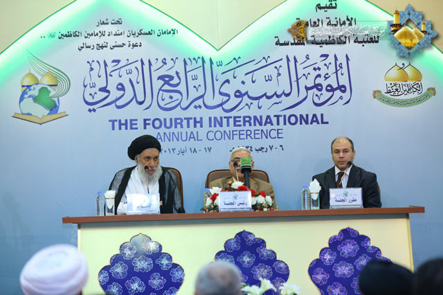 بغية الإسهام في تطوير المشاريع الثقافية في مختلف مجالات الحياة, وفتح الآفاق أمام العقل الإنساني و إثراء الضمير الإنساني بالمبادئ الرسالية وترسيخها لدى الأمة, وللتعرف على الإبعاد الحقيقية للإمامة ودورها في الحياة الإسلامية بشكل علمي وموضوعي, فأصبح لزاماً على العتبة الكاظمية المقدسة أن تصون هذا التراث الضخم والعمل على نشر الوعي الفكري والثقافي بين ابناء المجتمع الإسلامي النابع من صميم العقيدة والمتميز بصوره المشرقة, ولإبراز الدور الرسالي والمسؤوليات التي كان يضطلع بها الإمامين المَعصومَين علي بن محمد الهادي والحسن بن علي العسكري(عليهما السلام), انطلقت صباح اليوم الجمعة المصادف 17/5/2013م والموافق 7رجب 1434هـ, فعاليات المؤتمر السنوي الرابع الدولي في رحاب العتبة الكاظمية المقدسة, ويأتي هذا المؤتمر الذي عقد تحت شعار: (الإمامان العسكريان امتداد للإمامين الكاظمين(عليهم السلام) دعوة حسنى لنهجٍ رسالي) ليؤكد على الأهمية البالغة التي توليها الأمانة العامة للعتبة الكاظمية المقدسة وعلى رأسها الامين العام الحاج (فاضل الانباري) لنشر فكر اهل البيت (عليهم السلام) وتستمر فعاليات المؤتمر على مدى يومين متتاليين. وحضر المؤتمر العديد من الشخصيات كان في مقدمتها نائبا رئيس ديوان الوقف الشيعي سماحة الشيخ(علي الخطيب) والشيخ (سامي المسعودي) والأمين العام للعتبة العلوية المقدسة سماحة الشيخ(ضياء الدين زين الدين) وممثلي العتبات المقدسة والمزارات الشريفة وممثلي الجامعات والعديد من المفكرين والعلماء ورجال الدين ورؤساء وأساتذة الجامعات والحوزات العلمية إضافة للشخصيات السياسية والأكاديمية من داخل العراق وخارجه, وتمثلت المشاركات الدولية بكل من (الجمهورية الإسلامية في إيران، ومصر، ولبنان، واليمن، والبحرين، والأردن، والجزائر، وغانا، ونيجيريا, والصومال, والنرويج، والباكستان، والهند، وتايلند, وتركيا، وهولندا، وروسيا, وأمريكا، وإنكلترا). أما الجامعات العراقية المشاركة في المؤتمر هي: (جامعة بغداد, والجامعة المستنصرية, وجامعة الكوفة, وجامعة البصرة, و جامعة القادسية, و جامعة ميسان, و جامعة ذي قار, وجامعة بابل, وجامعة ديالى, و جامعة كربلاء, والجامعة العالمية للعلوم الإسلامية, و جامعة الصدر الدينية).