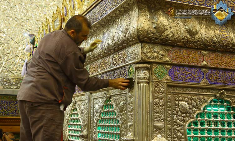 أعمال تنظيف وجلي الشباك الطاهر لضريحي للإمامين الجوادين "عليهما السلام"