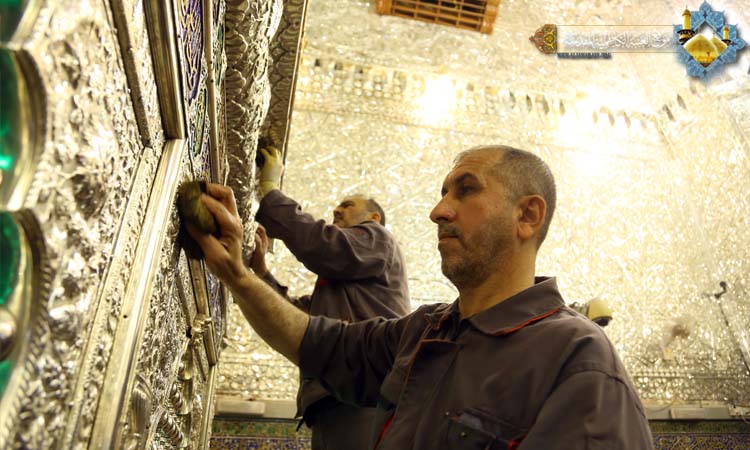 ضمْن الاستعدادات التي تقوم بها العتبة الكاظمية المقدسة لاستقبال ذكرى استشهاد الإمام الصابر موسى بن جعفر الكاظم "عليه السلام" قامت الملاكات المتخصصة في وحدة الخدمات المتنوعة/ الفضة، بإجراء عمليات الصيانة والجلي والتنظيف للأجزاء الفضية الخاصة بالشباك الطاهر لمرقدي الإمامين الهمامين موسى بن جعفر الكاظم ومحمد بن علي الجواد "عليهما السلام" وتلميعها وإدامتها بالكامل وبدقة عالية، وإزالة عوامل الأكسدة والترسبات التي تسببها الظروف المناخية، لأجل الحفاظ على صورتها الجميلة وإظهارها بما يتناسب والأجواء الإيمانية.