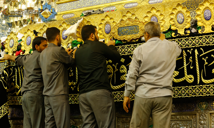 ضريح الإمامين الجوادين عليهما السلام يتوشح بالسواد إيذاناً لذكرى استشهاد كاظم الغيظ "عليه السلام"