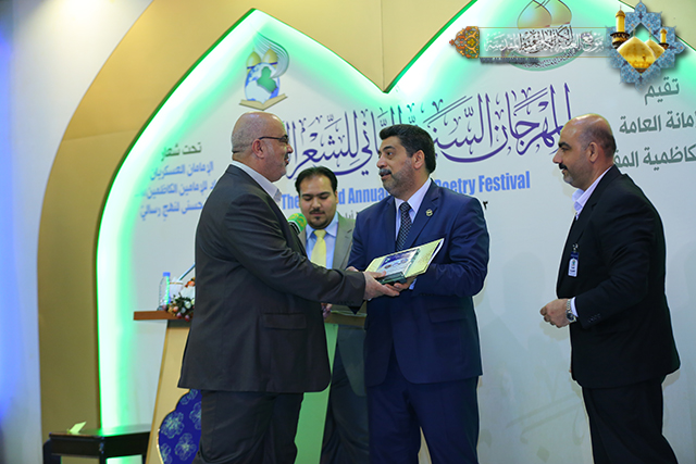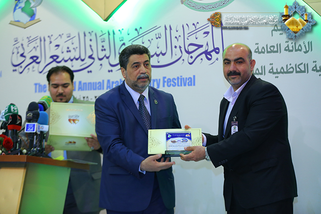 واختتم حفل المهرجان بتوزيع الشهادات التقديرية والدروع على الشعراء المشاركين وأعضاء اللجنة التحضيرية للمهرجان وقسم الشؤون الفكرية والثقافية وقسم العلاقات العامة والاعلام وشعبة مضيف الإمامين الجوادين(ع), من قبل الأمين العام للعتبة الكاظمية المقدسة الحاج(فاضل علي الأنباري) .