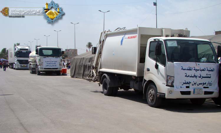 انطلاقاً من قول الإمام جعفر الصادق: (أحيوا أمرنا رحم الله من أحيا أمرنا), ومواساة للرسول الأكرم وأهل بيته الأطهار "عليهم السلام", شارك خَدَمَة العتبتين المقدستين الحسينية والعباسية في الزيارة المليونية المباركة لاستشهاد الإمام موسى بن جعفر "عليه السلام"، وقامت بتقديم الخدمات وتوفير مستلزمات الضيافة للزائرين الكرام، وعن طبيعة تلك الخدمات تحدث لموقع العتبة الإلكتروني رئيس وفد العتبة العباسية المقدسة السيد خليل مهدي الهنون قائلاً: زيارة الإمام الكاظم "عليه السلام" تأتي بعد زيارة عاشوراء والأربعين من حيث الأهمية فقد وفرت العتبة الحسينية المقدسة المجمعات الصحية للزائرين وحوضيات الماء التي تم نشرتها في أرجاء الكاظمية المقدسة، كما وفرت العتبة العباسية معمل الثلج المتنقل وتوفير ما يقارب "10 آلاف" قالب و "300 ألف" قدح ماء RO فضلاً عن الأفران والمضيف المتنقل مع طاقمه لتجهيز مادة الوجبات الغذائية للزائرين، حيث شارك في هذه المناسبة قسم الخدمية، وقسم الآليات، وقسم حفظ النظام، وقسم المضيف وقسم الصيانة الهندسية حاملين شعار التشرف بالخدمة في كل مكان يذكر فيه أسم أهل بيت النبوة "عليهم السلام" وتأمين الخدمات للزائر الكريم.
