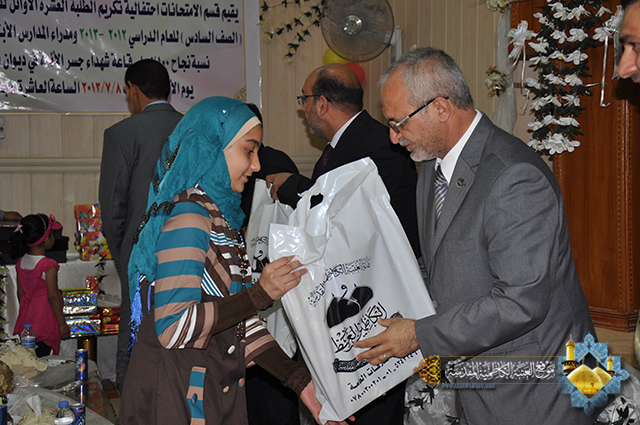 في خطوة تعكس مدى الاهتمام الذي توليه الأمانة العامة للعتبة الكاظمية المقدسة من خلال دعمها للنشاطات الانسانية والمجالات التربوية والتعليمية والانفتاح والتواصل مع المؤسسات العلمية والفكرية والثقافية, شارك وفد العتبة الكاظمية المقدسة برئاسة امينها العام أ.د (جمال الدباغ) في الحفل الذي اقامته المديرية العامة لتربية الكرخ الثالثة لتكريم الطلبة العشرة الاوائل المتفوقين للمرحلة الابتدائية في الصف السادس للعام الدراسي 2012ــ 2013م وإدارات المدارس التي حققت نسبة نجاح 100% , والذي اقيم في ديوان المديرية على قاعة(شهداء جسر الائمة), برعاية المدير العام لتربية الكرخ الثالثة أ.د (محمد جعفر), وكان للعتبة الكاظمية المقدسة حضور فاعل ومتميز في هذا الحفل الذي حضره العديد من الشخصيات الاجتماعية والتربوية والعلمية والاكاديمية والثقافية, حيث قدم الأمين العام للعتبة الكاظمية المقدسة الهدايا على الطلبة العشرة الاوائل تشجيعاً لهم على دوام المثابرة والتفوق لتحقيق طموحاتهم وهم يتطلعون الى مستقبل واعد وكذلك الى قطاعات التعليم التابعة لمديرية تربية الكرخ الثالثة تثميناً لجهودهم المباركة متمنياً لهم التوفيق والسداد .