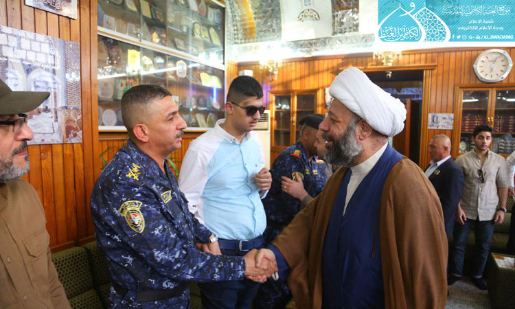 تشرف بزيارة الإمامين الجوادين"عليهما السلام" قائد الشرطة الاتحادية الفريق رائد شاكر جودت, والوفد المرافق له من القيادات الأمنية وقيادات الحشد الشعبي، وبعد أدائه مراسم الزيارة والدعاء عند ضريحي الإمامين الهمامين موسى بن جعفرالكاظم ومحمد الجواد "عليهما السلام", حل الوفد ضيفاً كريماً في مقر الأمانة العامة للعتبة الكاظمية المقدسة, حيث كان في استقباله نائب الأمين العام للعتبة الكاظمية المقدسة سماحة الشيخ عَدِي الكاظمي بكل حفاوة وترحيب, إذ تقدم بالتهاني والتبريكات إلى قواتنا الأمنية بمناسبة تحرير الموصل والانتصارات التي تحققت في كسر شوكة الإرهاب التكفيري، بعدها تم استعراض الشأن الأمني الذي تشهده مدينة الكاظمية المقدسة وطبيعة الخدمات التي تقدمها العتبة المقدسة وهي تستقبل وتستضيف الأعداد الكبيرة للزائرين الكرام. من جهته عبّر قائد الشرطة الاتحادية عن شكره وامتنانه لحسن الضيافة والاستقبال داعياً بالتوفيق والسداد لجميع المسؤولين والقائمين على خِدمة العتبة المقدسة.
