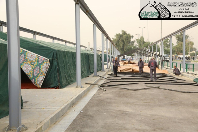 تحسباً لزيادة أعداد الوافدين لموسم الأربعين هذا العام، قامت الملاكات الخدمية في العتبة الكاظمية المقدسة بنصب وتجهيز الخيام الجديدة في شارع صاحب الزمان "عجل الله فرجه الشريف" ذات مساحة كبيرة وطاقة استيعابية عالية، فضلاً عن افتتاح مشروع المسقف الجديد مجهزاً بالمنشأت الصحية والخدمية لتأمين إيواء ومبيت الزائرين الكرام الوافدين من داخل العراق وخارجه.