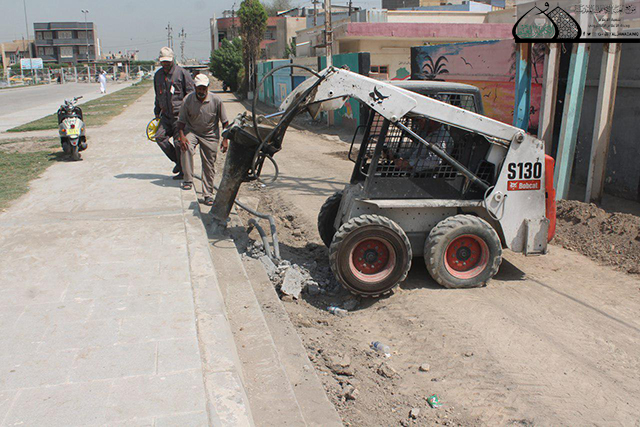 وأضاف الحيدري قائلاً: تم نصب عشرة مصادر طاقة ثابتة (pillar) على جانبي شارع الإمام علي "عليه السلام" وتغذيتها بواسطة قابلوات قياس ( 3X240+120mm2 )، وبطول إجمالي مقداره (1250) م من المحطة الصندوقية (KIOSK)، وذلك لتكون مصادر تغذية ثابتة وجاهزة لاستقبال الأحمال وخصوصاً عند الزيارات والمناسبات الدينية، وفي الوقت ذاته تم تحويل مصدر تغذية أعمدة إنارة شارع الإمام علي "عليه السلام" على هذه المحطة الصندوقية ليتم بذلك السيطرة على هذه الأعمدة من جهة العتبة مباشرة، وذلك لأن المحطة مجهزة بمصدر الطاقة البديلة (خط مولدة من العتبة) مما يضمن استمرارية إنارة الشارع دون انقطاع تحت أي ظرف من الظروف.