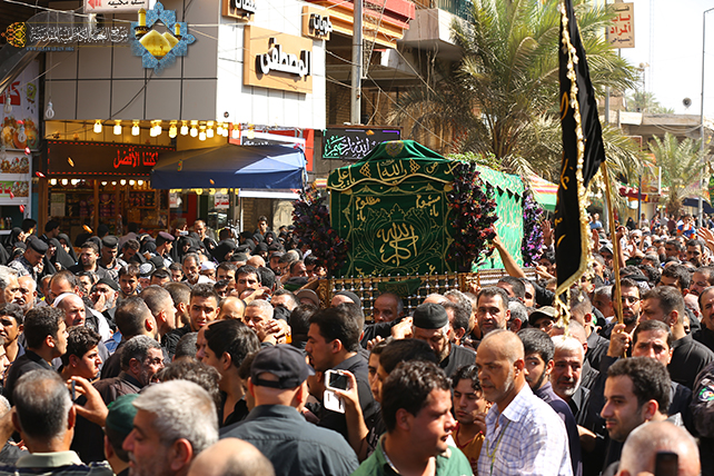 الحشود المؤمنة تشيّع النعش الرمزي للإمام محمد بن علي الجواد -عليه السلام